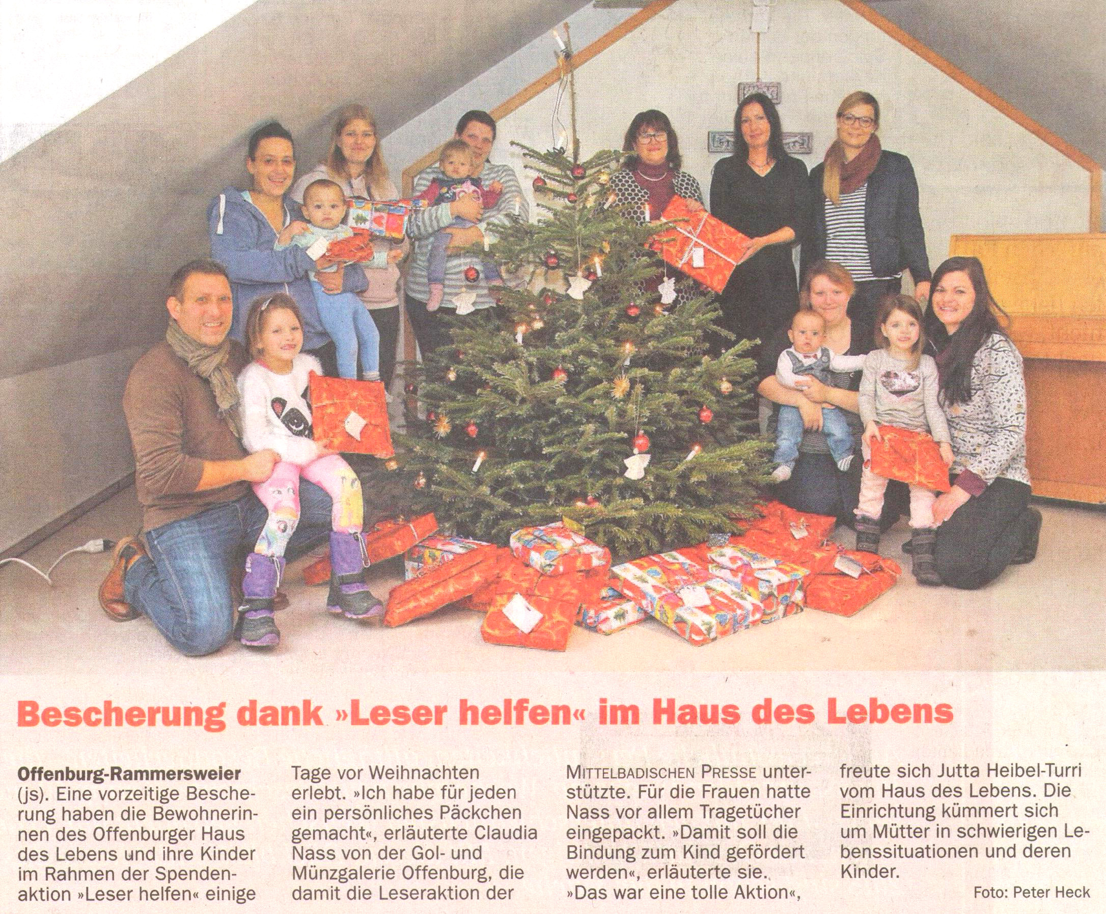 Bescherung dank "Leser helfen" im Haus des Lebens Presseartikel >